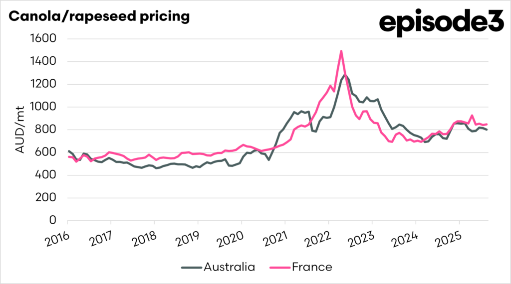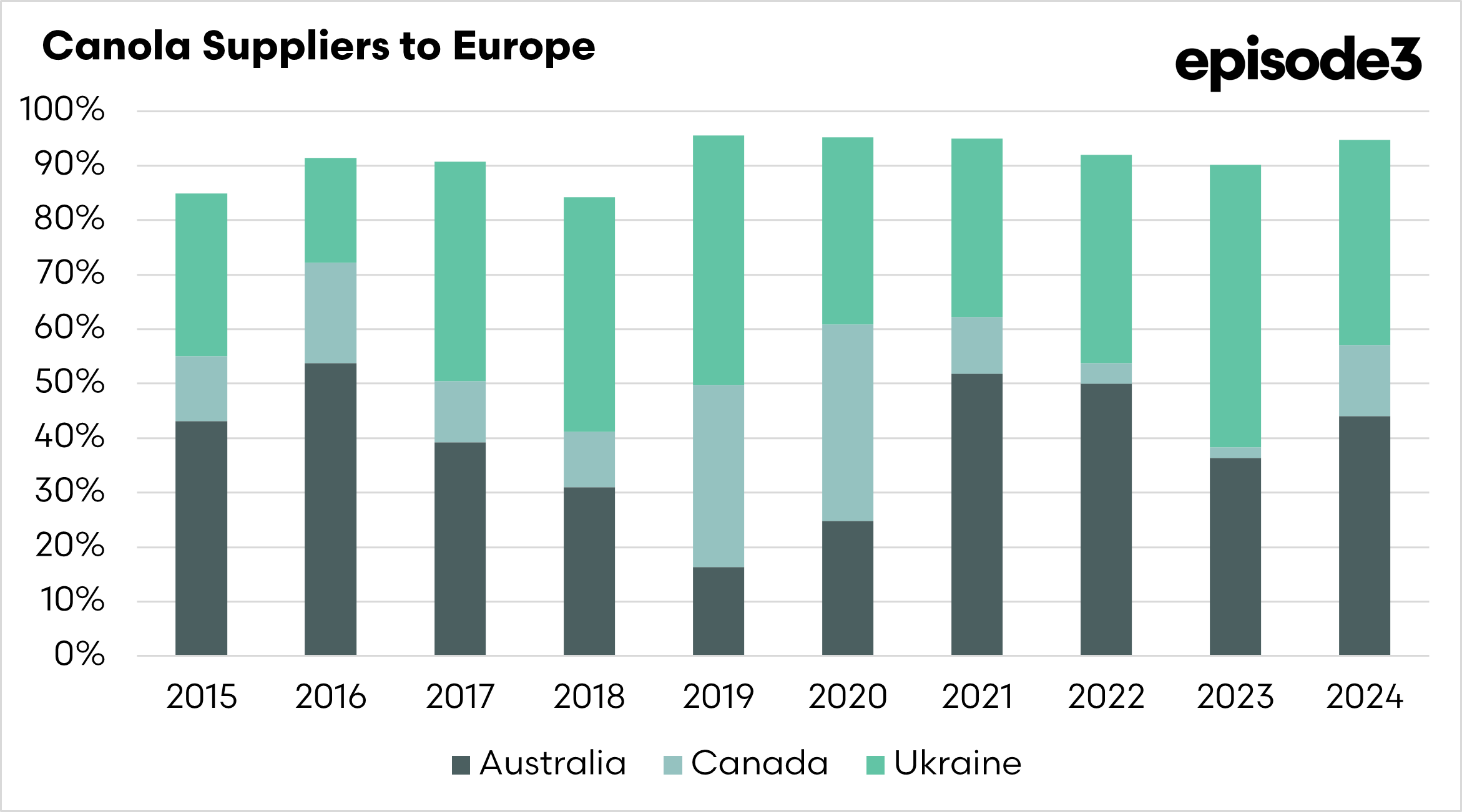 - Australia has focused on Europe as a market, but as China re-emerges as a potential major buyer of canola from Australia, we are in a better negotiating position.