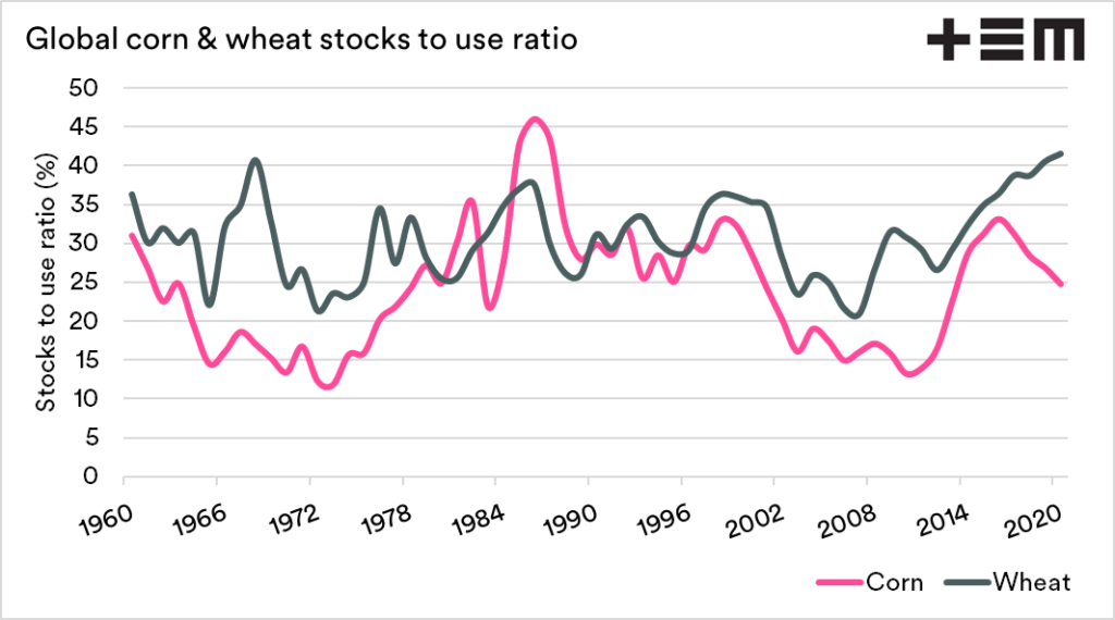 - The good thing is that wheat does not operate in a bubble, and the corn balance helps. The global corn STU is 24.7%, the lowest since 2013/14.