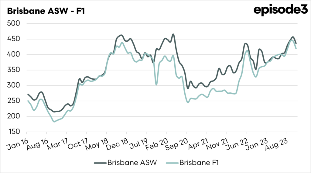 The chart below shows the price of wheat and barley in Brisbane. We can see that the pricing levels are off last month’s highs but are still very close to those achieved during the last drought when things were exceptionally poor.
