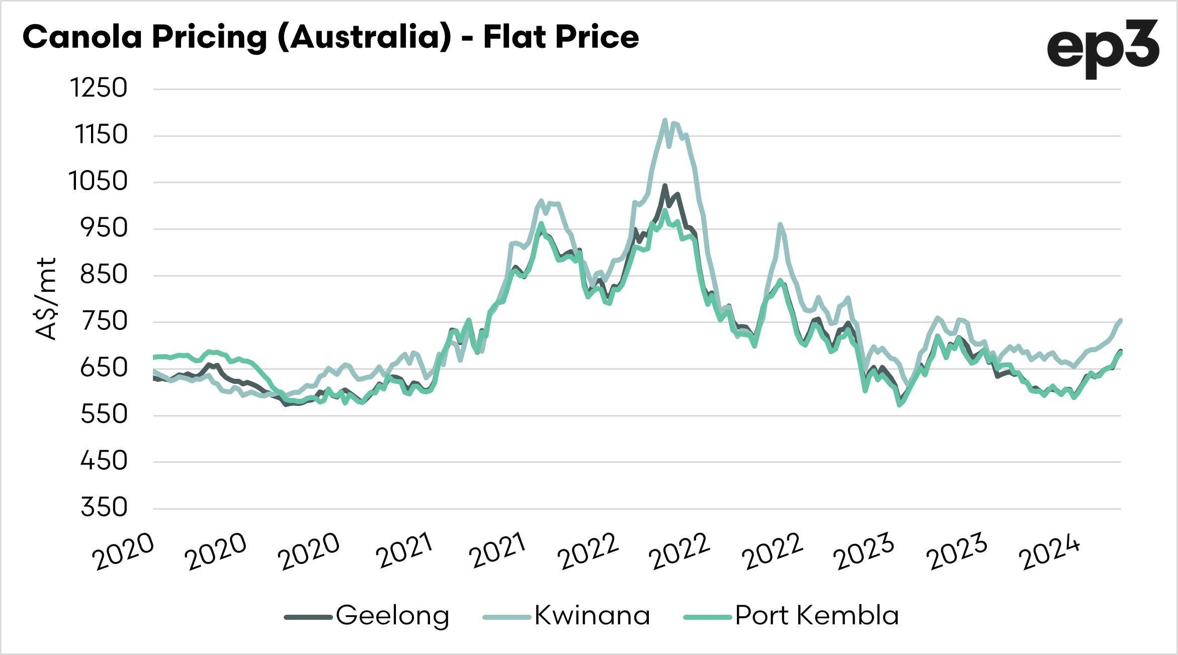 The canola market has been firing up a little recently, prices around the country have risen dramatically.