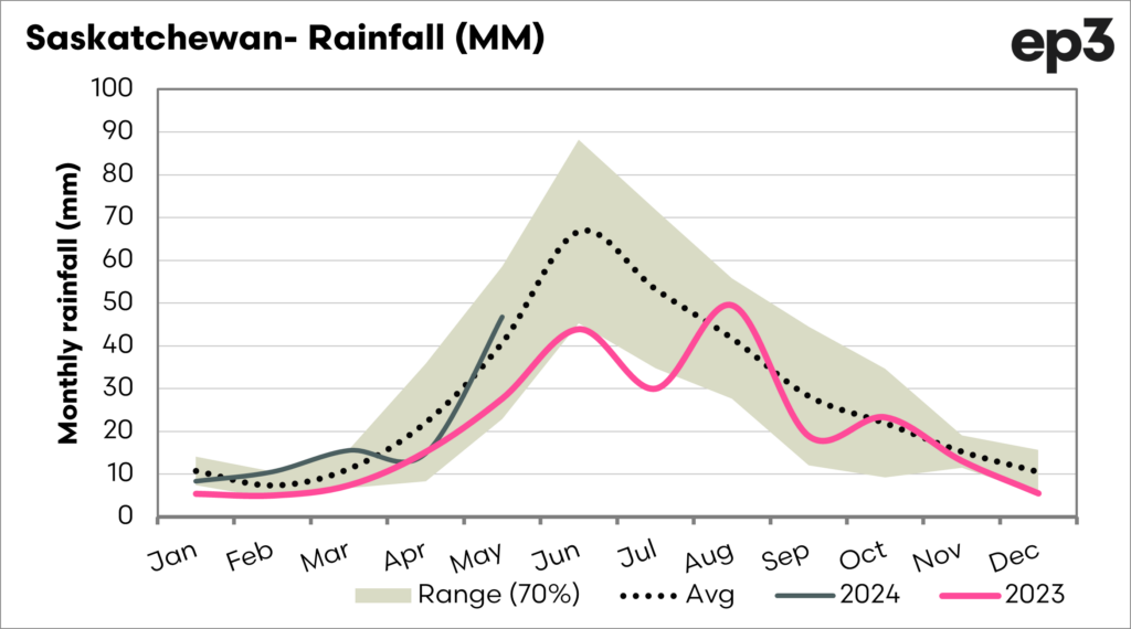 In canada, there were concerns about dryness in the canola crop. The majority is grown in Saskatchewan, and the rainfall has moved to a move average condition. It is still one to watch as the key growing period comes soon.