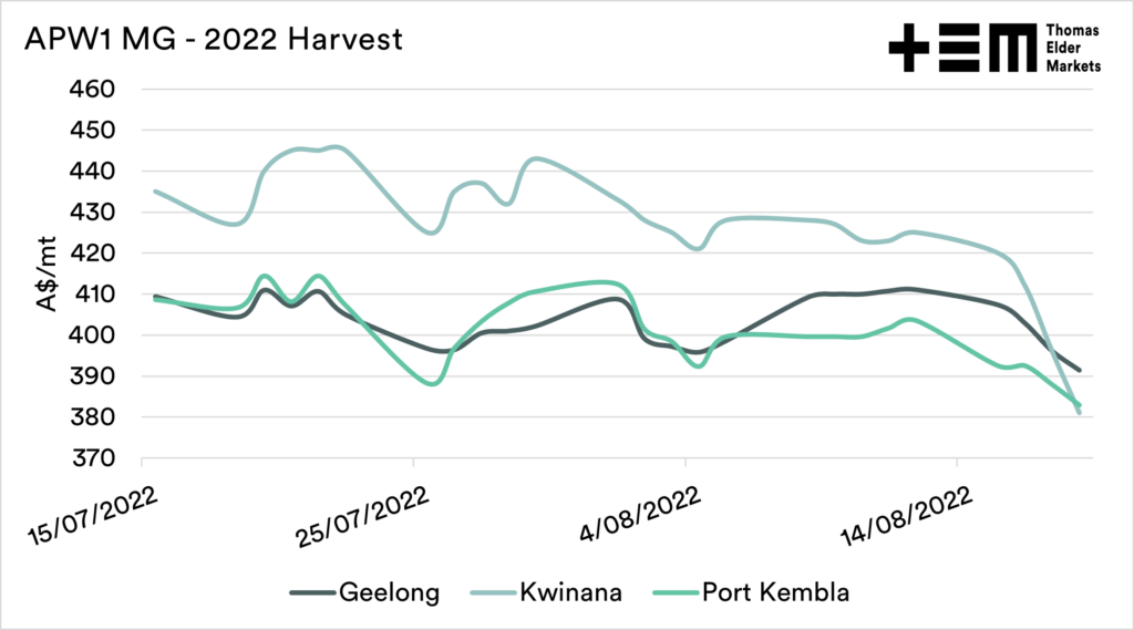 One of the major reasons for the fall in pricing levels is the rain. Large parts of the Australian cropping belt have been hit by rain, especially so in WA. In Western Australia, the prices have seen the largest fall.