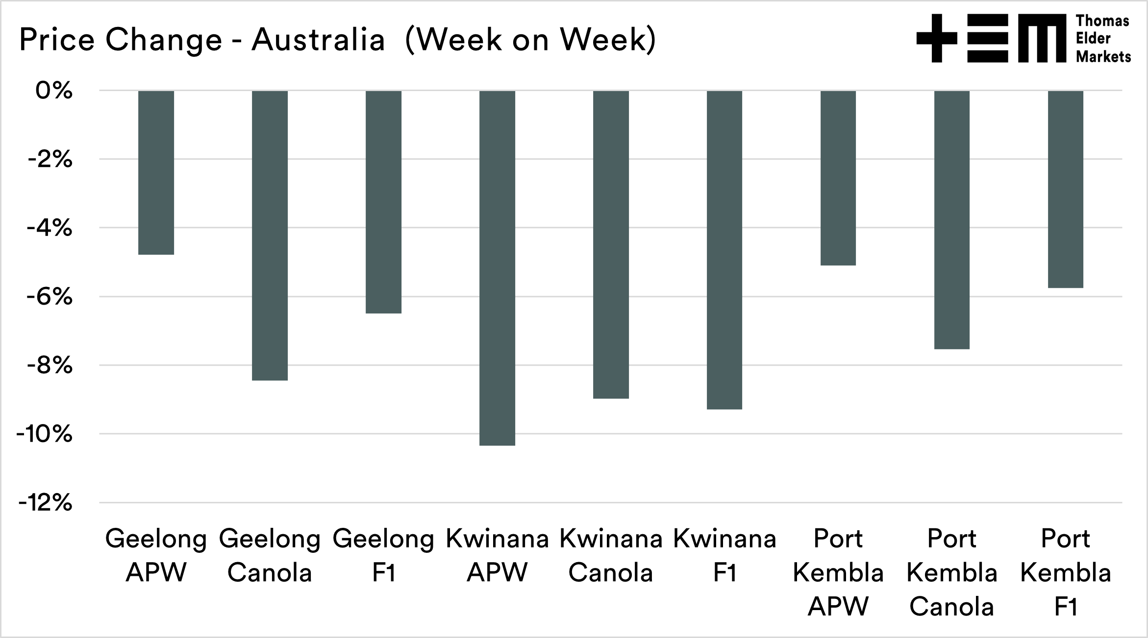 The past week has seen a considerable fall in wheat and oilseed prices around Australia. I have written today about the high input pricing (see here), and most of the costs of growing a crop have already been paid at high levels.