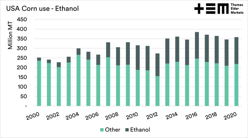 The US (and others) convert large volumes of grains and oilseeds into renewable fuels. This is an attempt to create more ‘green’ fuel and also provides a huge market for US crops, mainly soy and corn.