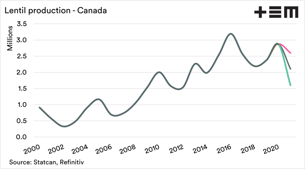 Lentils – average 2.1mmt, low 1.6mmt & high 2.6mmt.