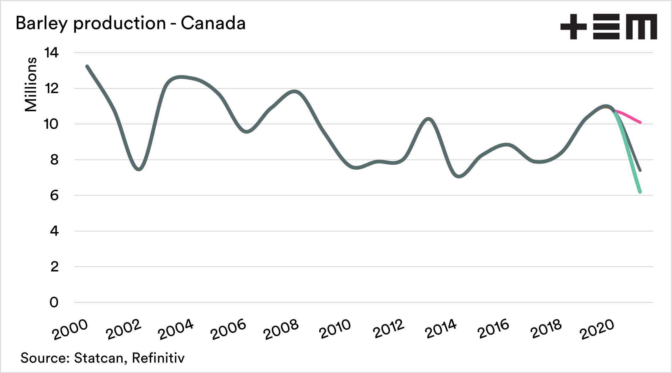 Canada has traded barley into China, a lower exportable surplus will put pressure on Chinese importers. They may look to the bountiful crops in Australia and wish they could buy from us – but be forced to other nations at higher pricing levels (see here)