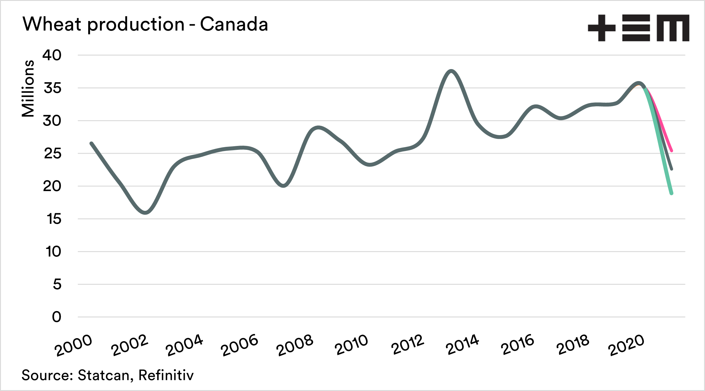 The trade are very pessimistic on the wheat forecast. The average production in Canada since 2010 has been 30.2mmt. A 22.6mmt crop is the lowest since 2007.