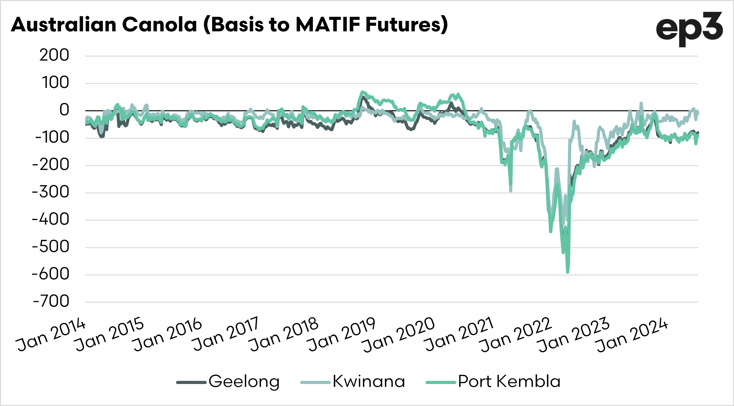 French rapeseed has pretty much always been at a premium to Australia for most of the past decade.