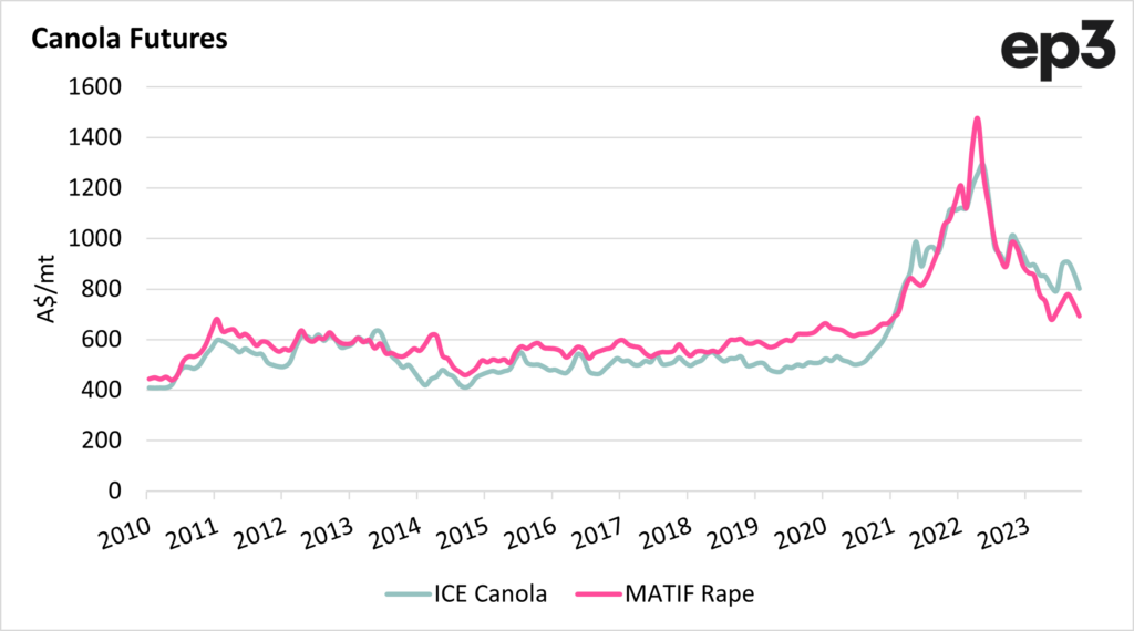 Typically, Australian canola would not have a huge premium against French rapeseed(unless we are in a drought). However, we tend to price higher than Canola from Canada, that is, unless they are in drought.