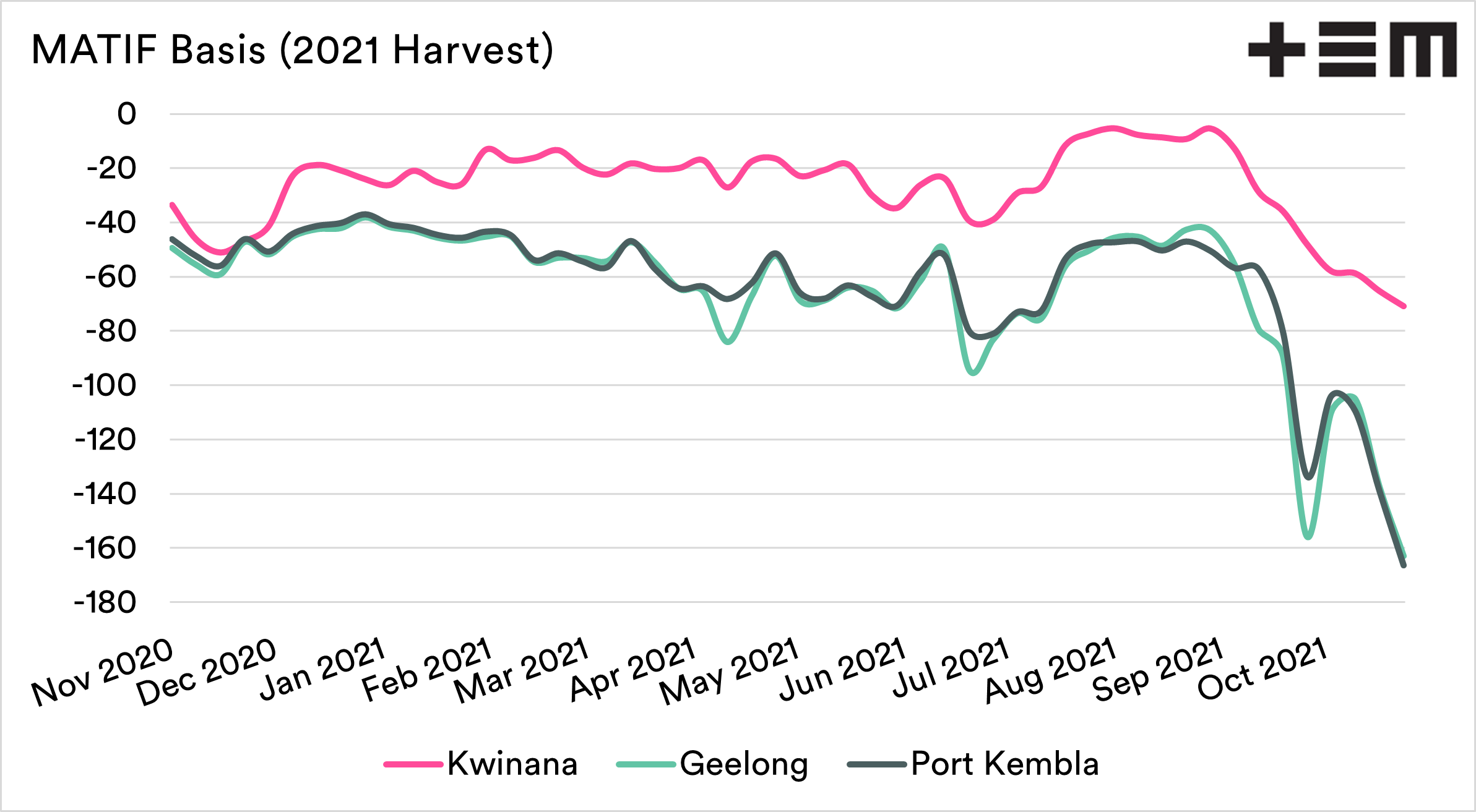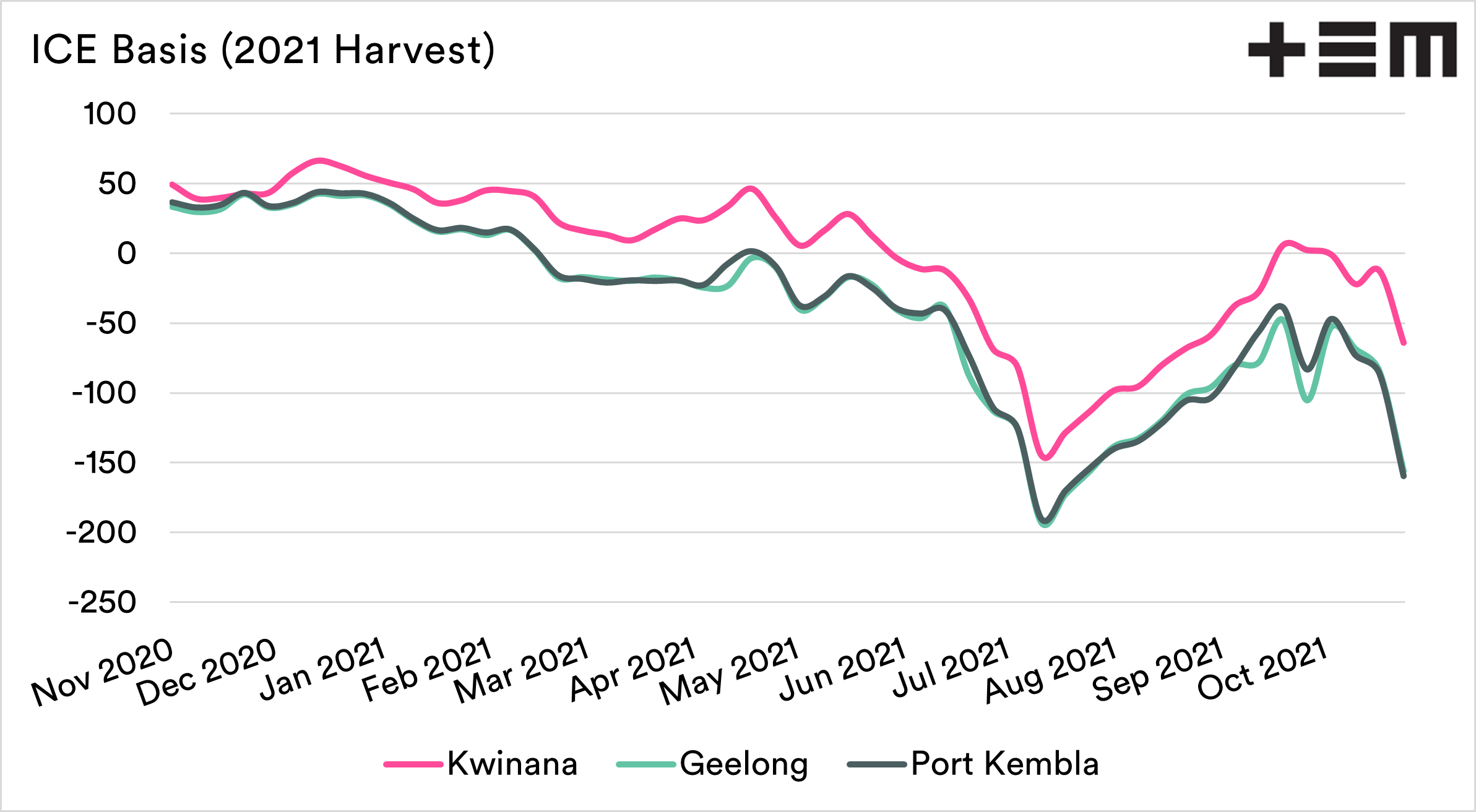 - Typically we would be at a premium to ICE futures. In Port Kembla this premium has fallen to a discount of A$160.