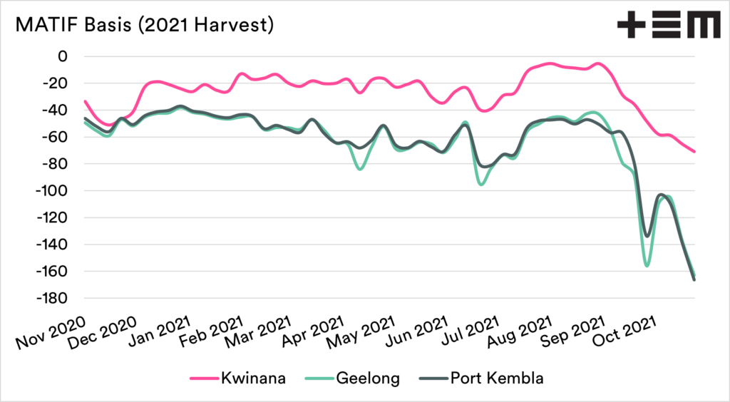 So whilst the local market hasn’t fallen massively (overall), our comparative pricing to overseas futures has fallen.