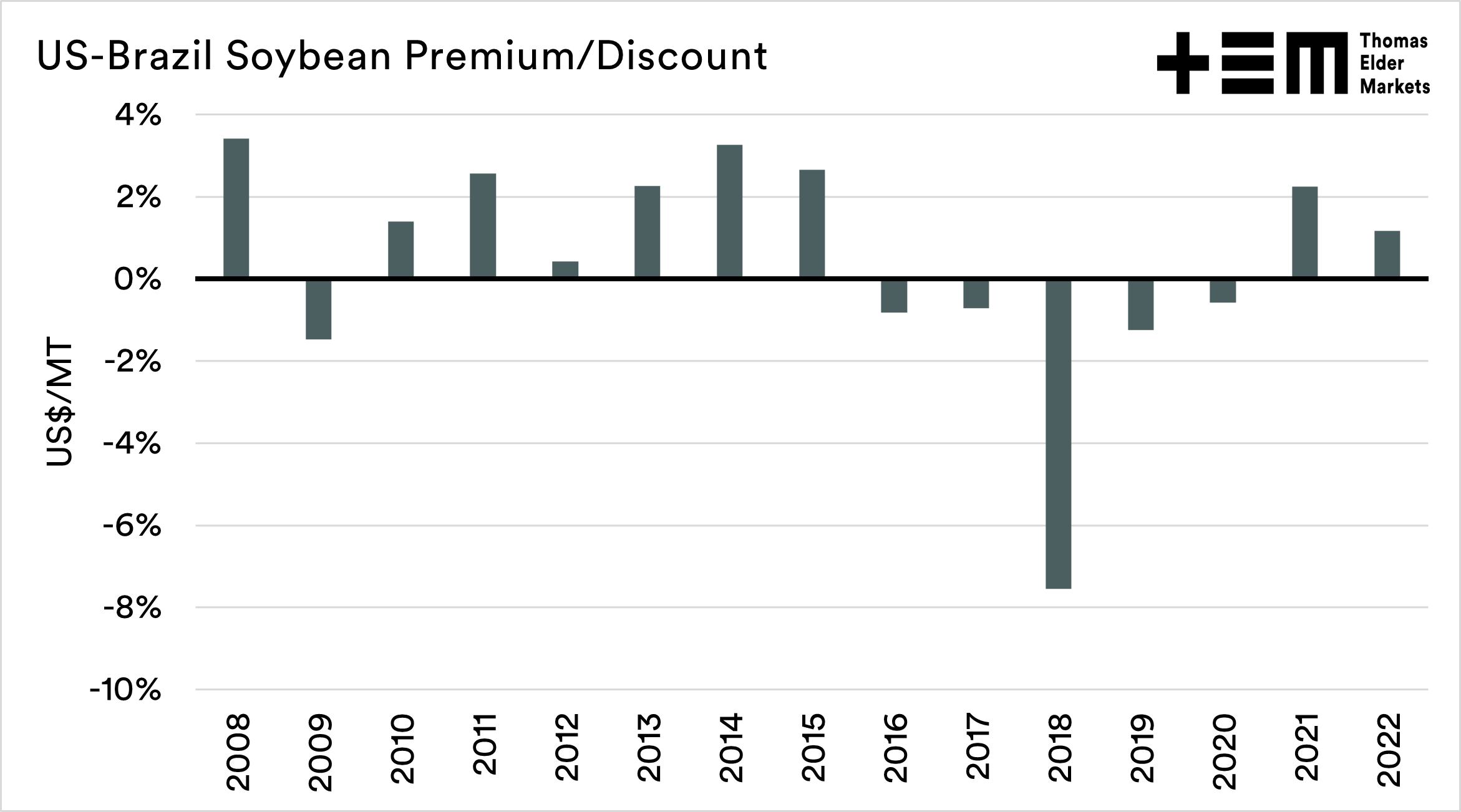 At this time, we saw Brazil move from a discount against the United States to a premium. This shows the impact of trade flow changes, especially when they involve such a substantial import nation.