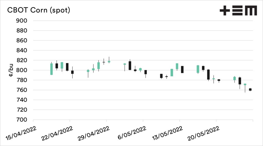 From an Australian perspective, CBOT wheat prices have shared a close trend over time with corn. What happens to corn has an impact on the wider grain sector, including wheat and barley.,