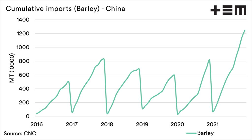 The barley market still remains rocked by the lack of access to China. In the past, we were a huge supplier of barley to China, until we suddenly weren’t.