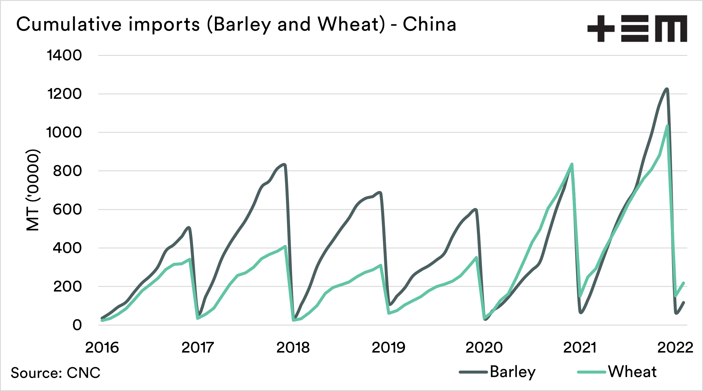 China continues to import barley just now from us, and they are paying a high cost to do so. Whilst they might not want our barley at the moment, they are more than happy to take large licks of wheat.