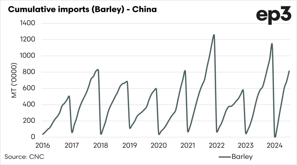 The other thing to note that regardless of whether they stop importing, this is a sign that the Chinese demand for grain may be lower than previously seen.