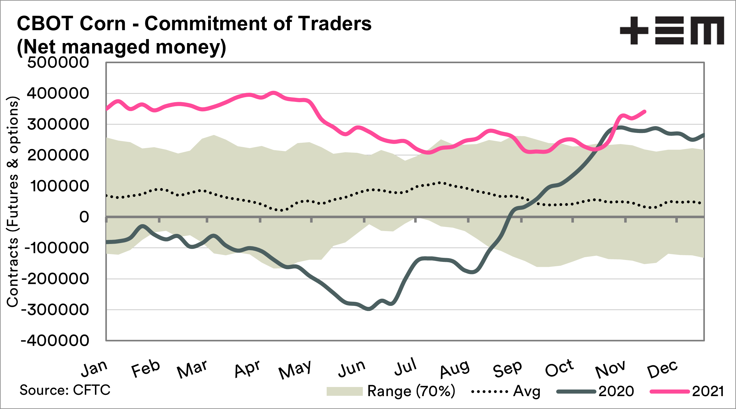 The commitment of traders report gives an indication of their sentiment on a weekly basis across a range of commodities. The net position of speculators is what we tend to focus on, whether they are long or short.