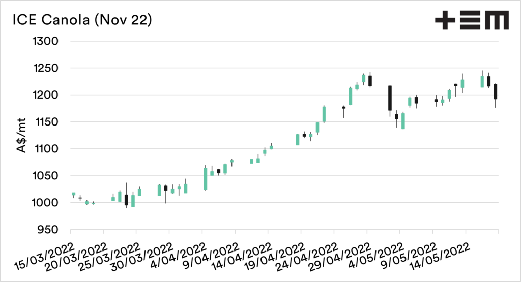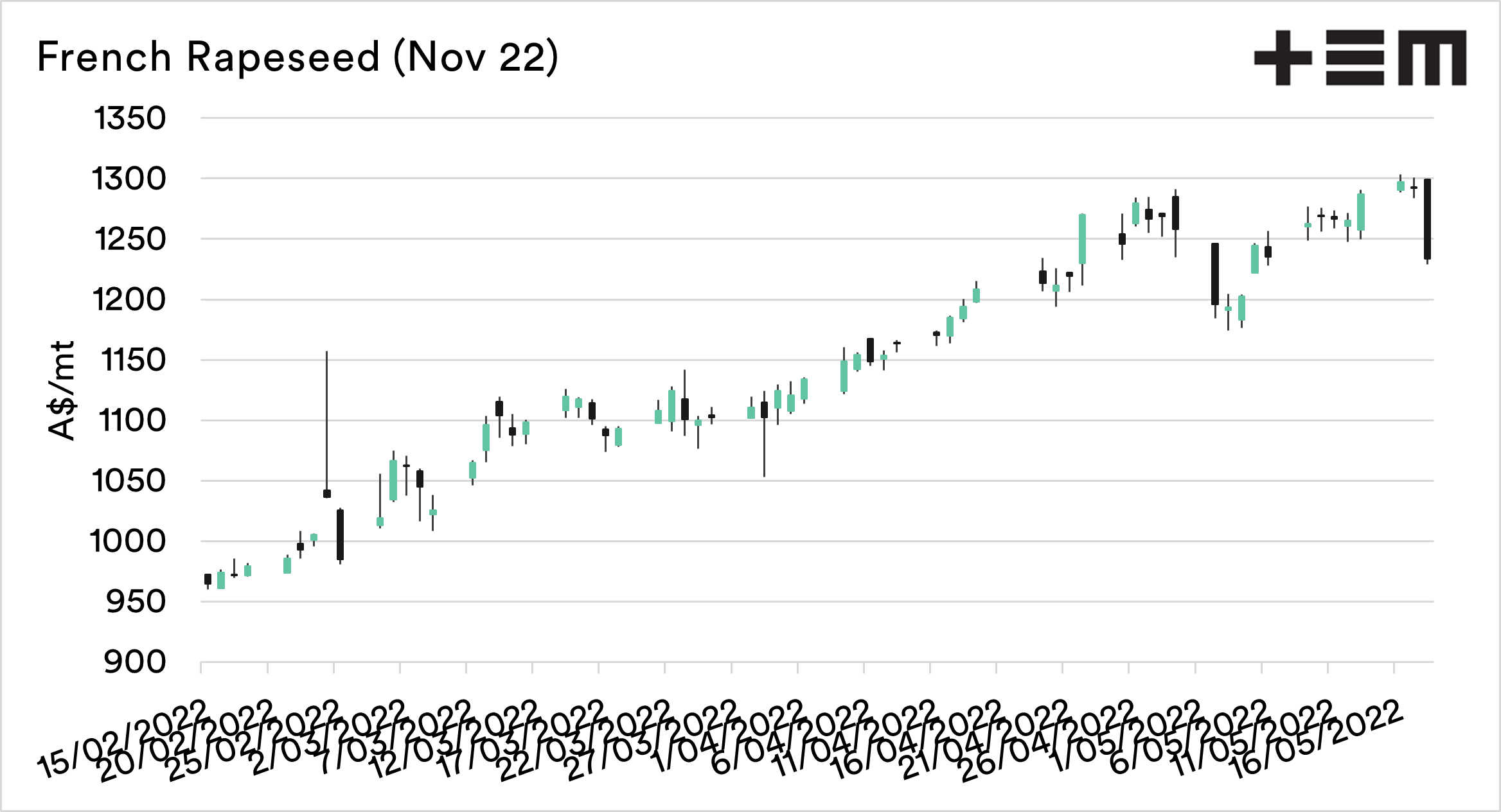 The canola/rapeseed market took a thumping last night. ICE canola (Canada) futures were down A$23, and Matif (French) rapeseed down A$59.