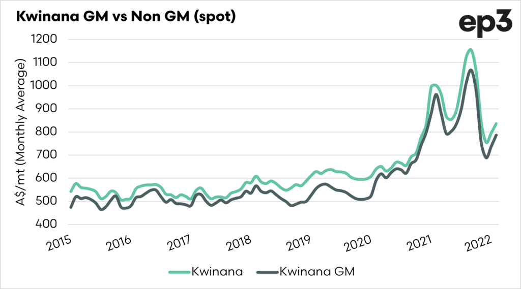 Over the years, I was involved in the work to bring the choice of GM crops to South Australian grain growers, which was ultimately successful. Many opponents of GM crops pointed towards the discount and that having GM crops would ultimately result in huge losses in income. What is the discount at the moment?