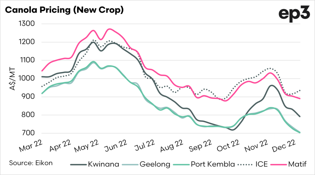 There is a lot of canola coming out of the paddocks at present, and that is getting sold into the market in large volumes as farmers were typically undersold going into harvest this year.