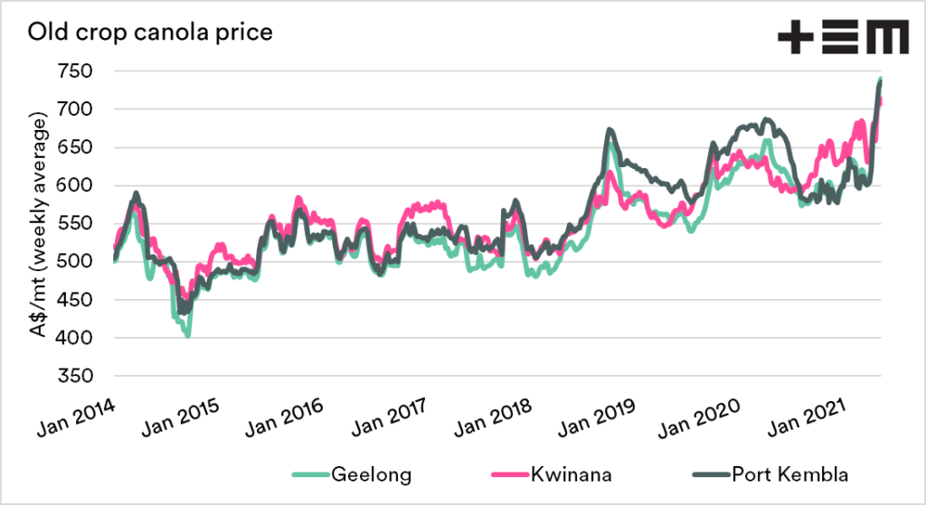 In the past week, the wheat price has been giving back some of its gains. Canola, on the other hand, has maintained its levels. Last week I briefly covered off the WASDE report for oilseeds (see here).