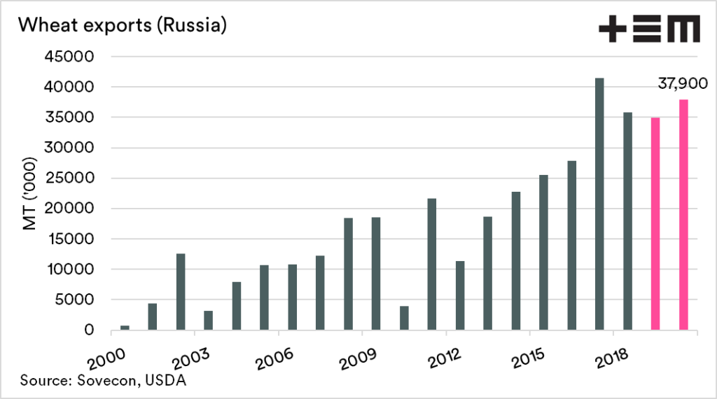 In 2019/20 Russia, the top world wheat exporter shipped abroad 34.9 MMT. In November 2020, before the tax news, SovEcon estimated 20/21 exports at 40.8 MMT.