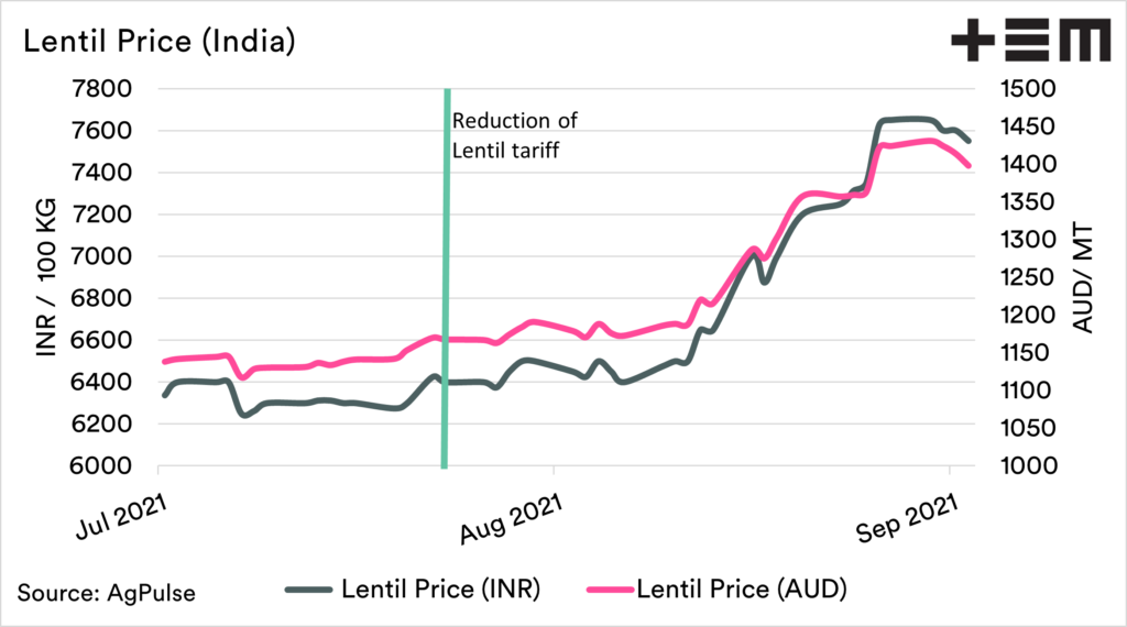 Lentil duty reduction, at a time of tight global supplies, has led to higher prices in international markets, resulting in amplified domestic values, without India importing substantial quantity. The step by the Indian government benefitted only the lentil origins, while Indian consumers are faced with elevated prices for their ‘masoor dal.’