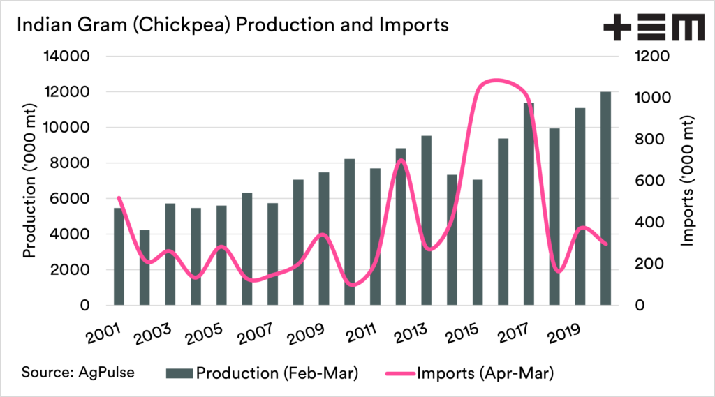 A case in point is at the time of heightened demand from Pakistan and Bangladesh amid normal Aussie chickpea crop, how prudent it will be for India to be a buyer in international markets. We see Australian 2020 chickpea production at 900 KMT and 2021 production between 1 and 1.3 MMT for the record.