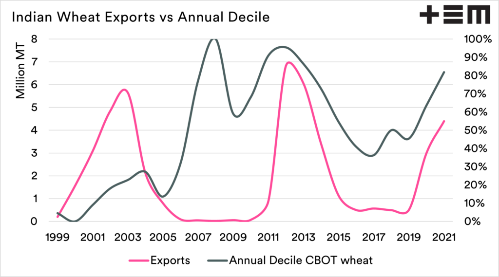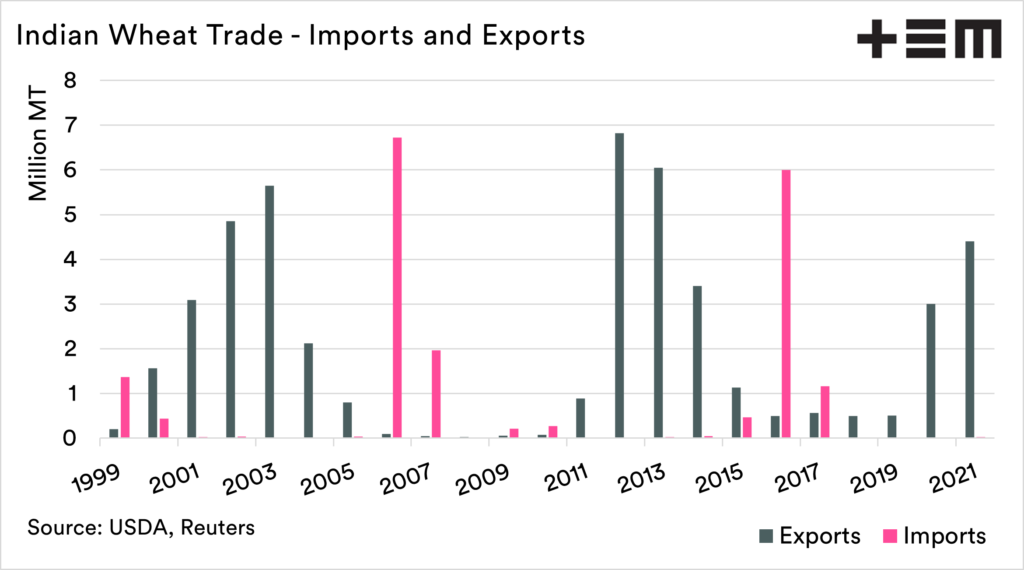 As a grain nation, India is quite fascinating. When you examine countries around the world, there are generally import nations and export nations. Australia is an export nation, with our generally huge surplus compared to our small population. Then you have countries like Egypt, which are vast importers of wheat.