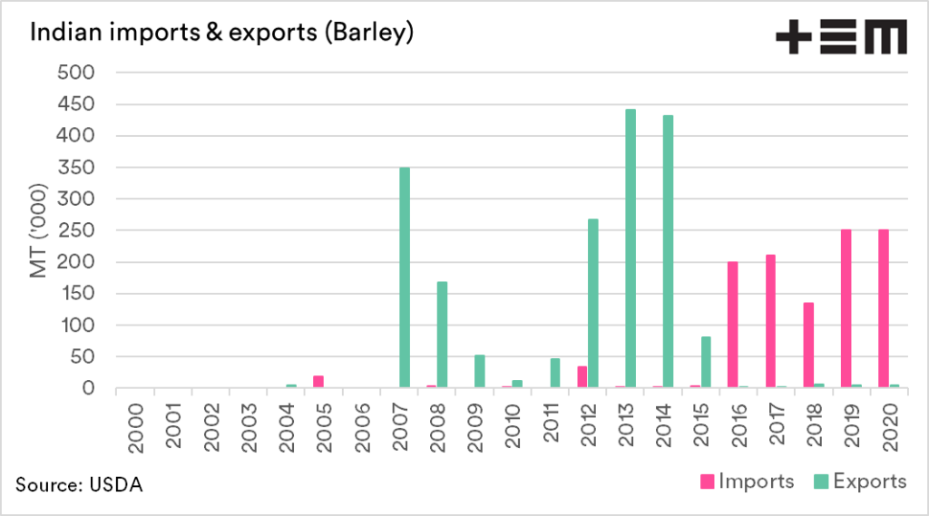India has been spouted as being a saviour for Australian barley. At present AEGIC estimate around 500kmt, rising to 1mmt (see here). The removal of phytosanitary requirements to make this happen are an excellent sign of the benefit of the work to remove trade barriers.