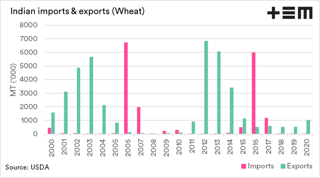 As a grain nation, India is quite fascinating. When you examine countries around the world, there are generally import nations and export nations. Australia is an export nation, with our generally huge surplus compared to our small population. Then you have countries like Egypt, which are vast importers of wheat.