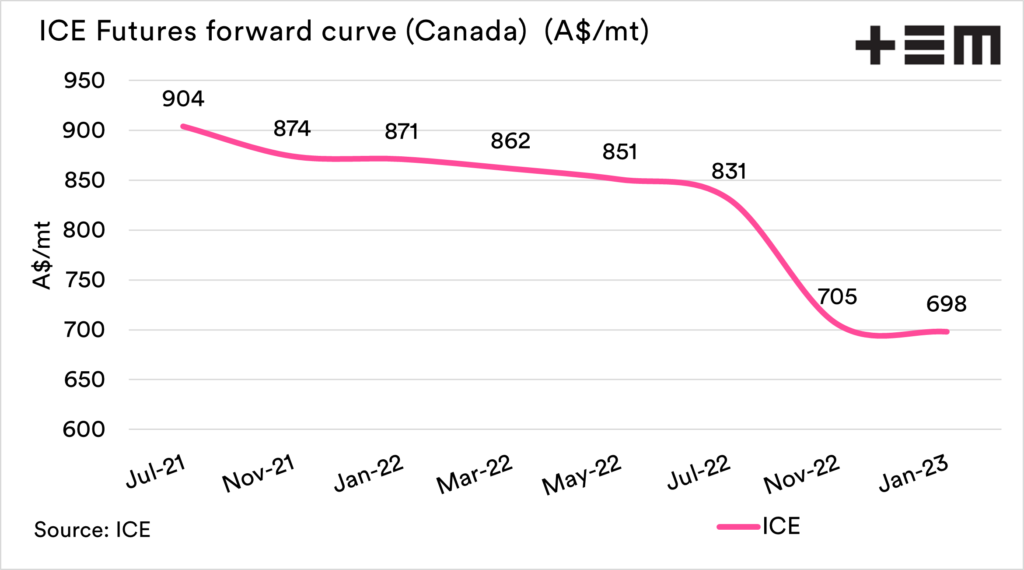 At the moment, November 2022, ICE futures are at A$705/mt. A large discount from the spot price of A$904/mt, but maybe this should still be considered?