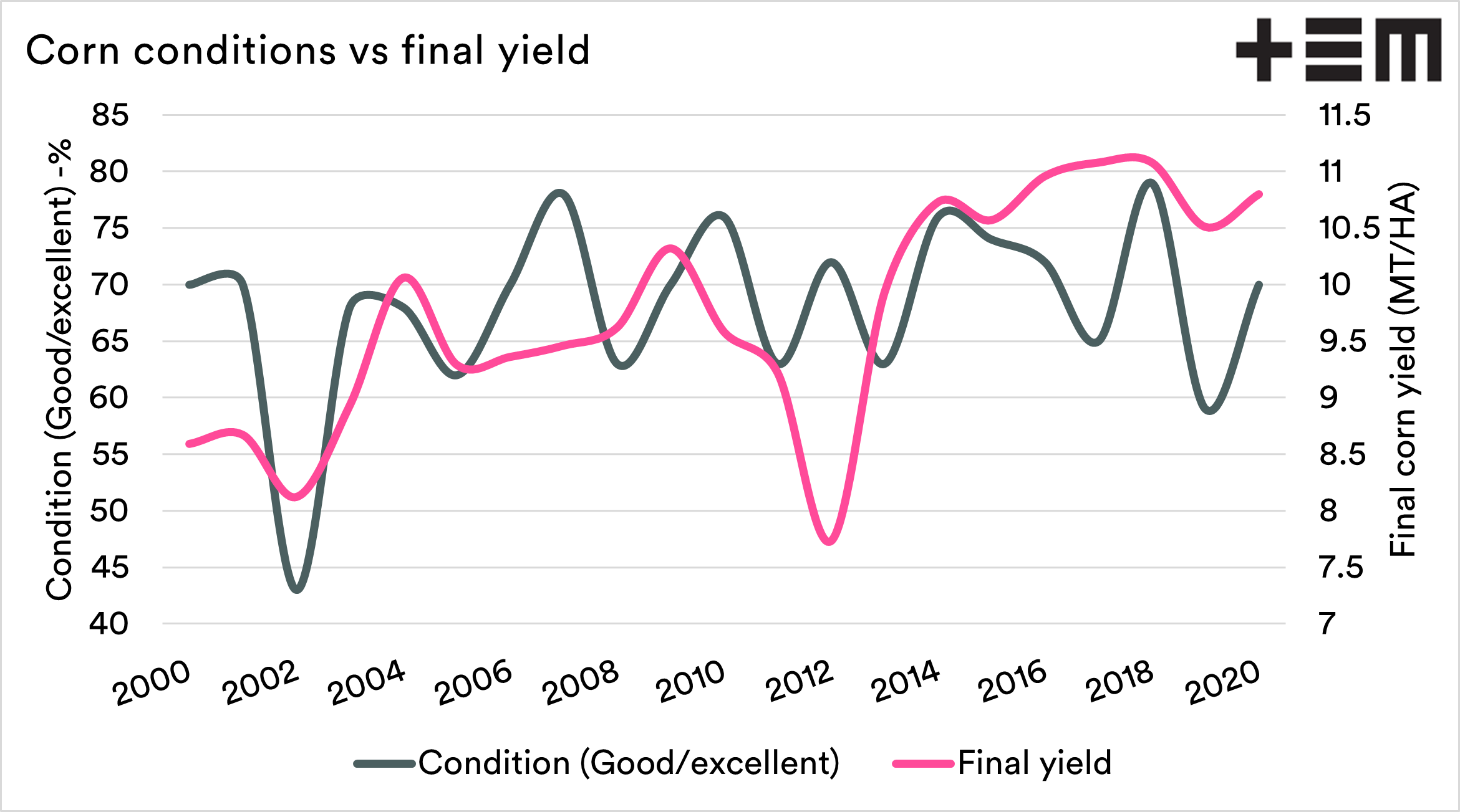 The first corn condition report, which details the condition of the entire US corn crop, has been released. Today we also covered the wheat conditions (see here), which was a mixed bag of good and bad.