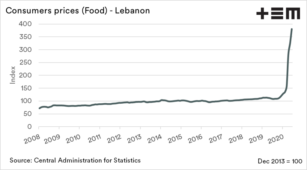 Lebanon was already suffering through a financial collapse which has seen its food prices increase dramatically during 2020.