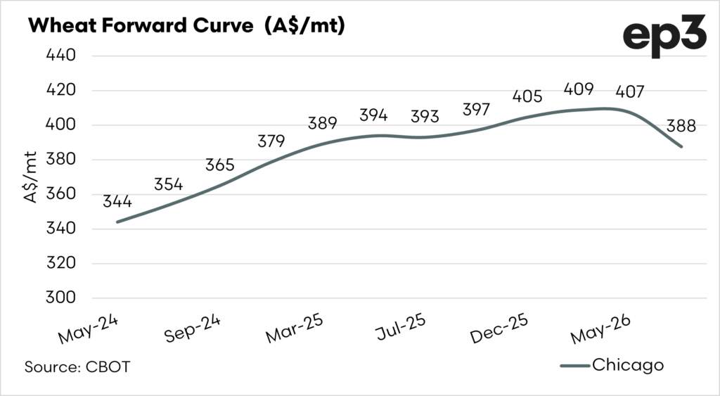 The wheat futures tend to be in contango and effectively provided a premium versus spot. This offers the opportunity to lock in futures on the forward curve i.e beyond the current harvest at a premium to spot.