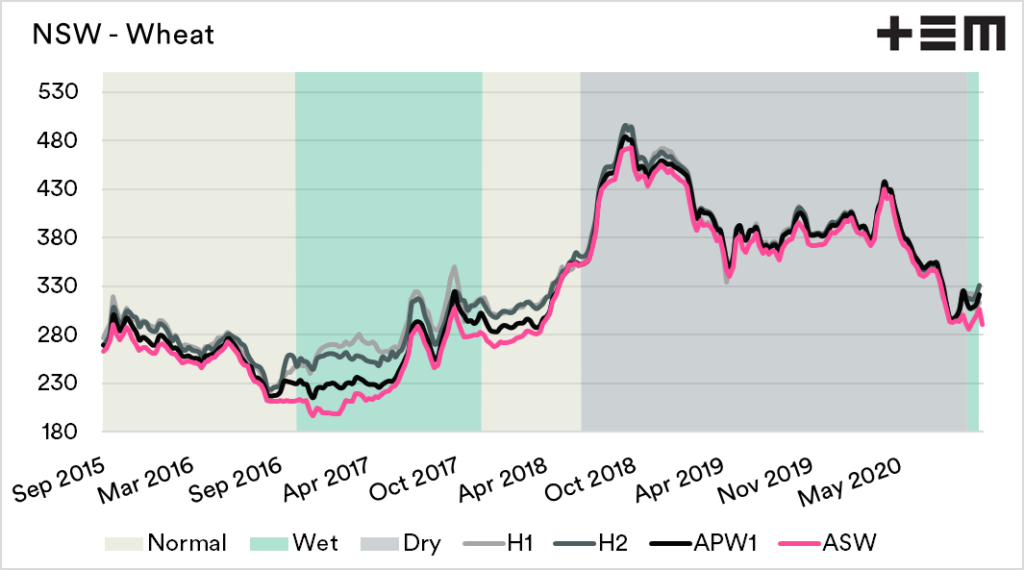 Dry season: The spreads from ASW to H1 tend to be minimal. The reason behind this is that buyers are not necessarily interested in quality. The majority of grain is destined for the throat of a beast, and access to supply is vital.
