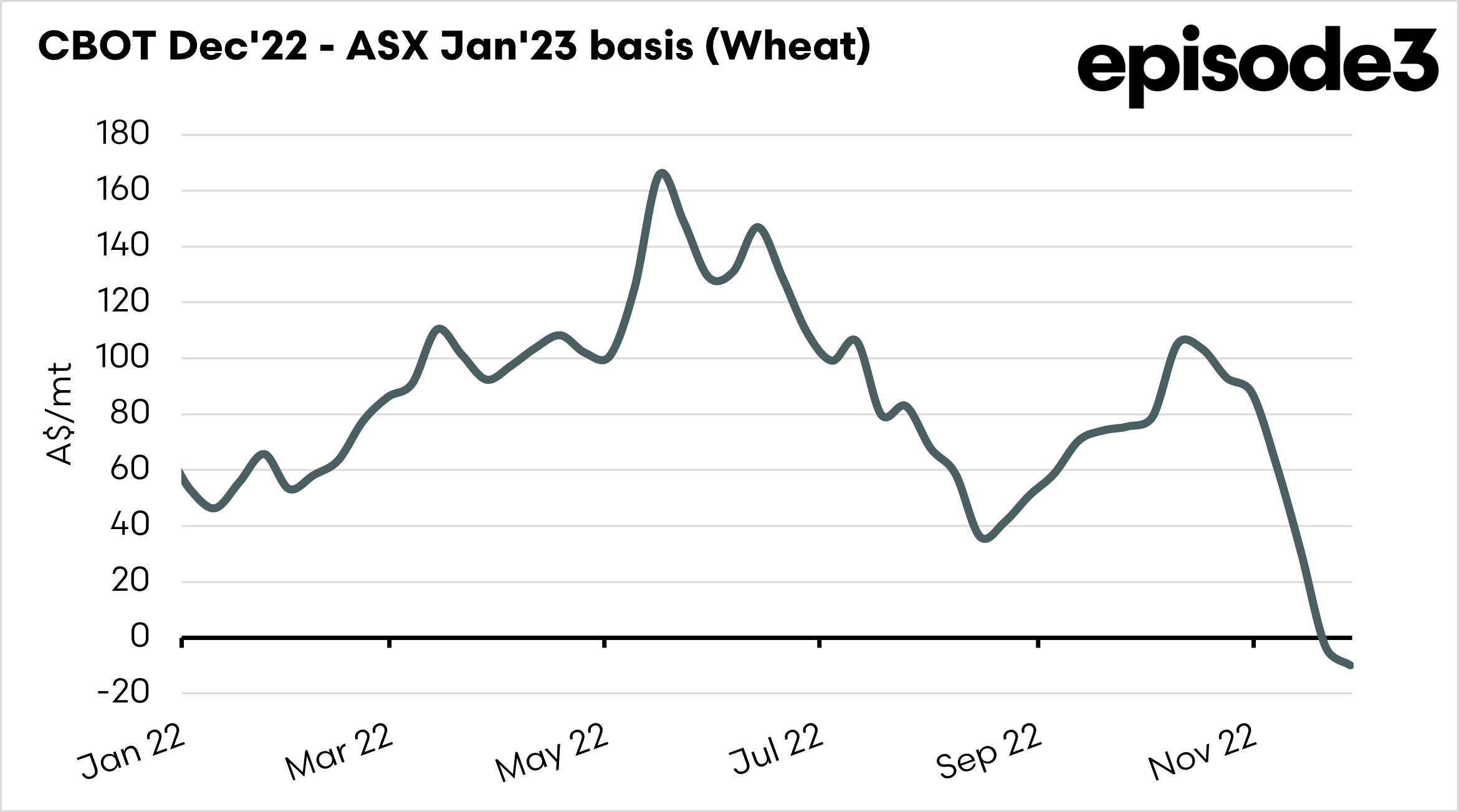If you were to lock in an ASX contract or a physical contract with one of your local accumulators, you would be locking in the basis – which at the current time is negative.