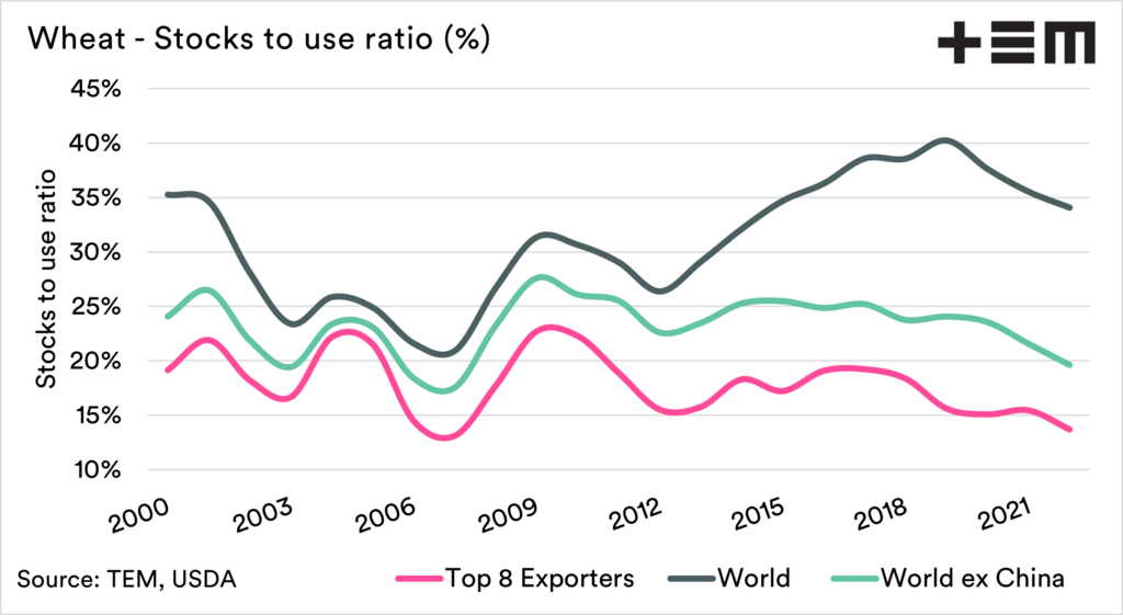 The top 8 exporters’ stocks are what is really available to the global trade, and it is low.