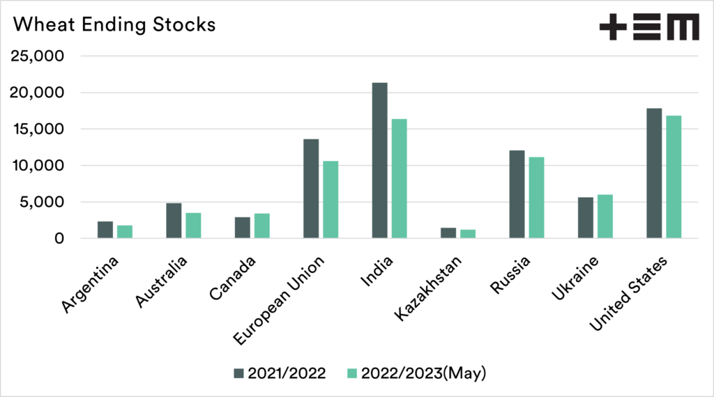 India – The USDA report was out before the ‘ban’ on exports of wheat from India. Exports, whilst not fully banned, are likely to be curtailed.