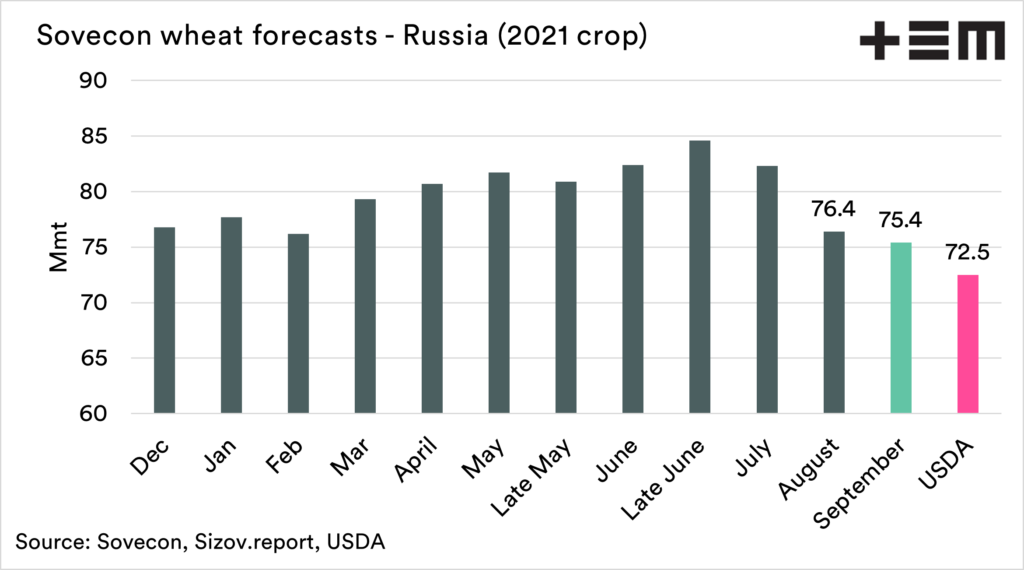 SovEcon, a leading Black Sea agricultural markets research firm, has cut 2021/22 Russian wheat crop estimate from 76.2 mmt to 75.4 mmt on low spring wheat yields.