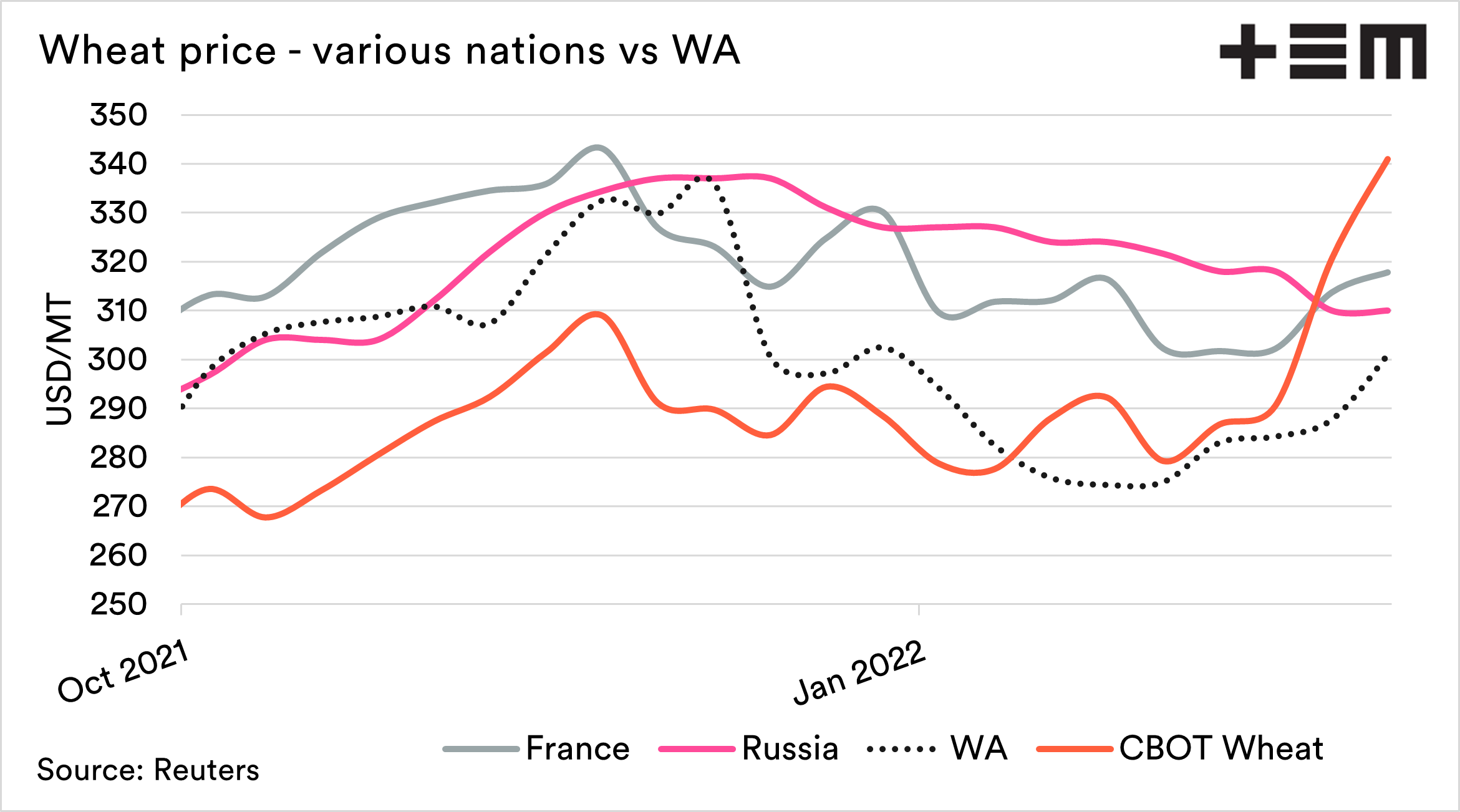 The longer that this conflict continues to persist, the deeper the impact will be on global markets. As discussed last week, the futures market is rallying but it is not flowing through to physical pricing (see here). This isn’t just in Australia but around the world.