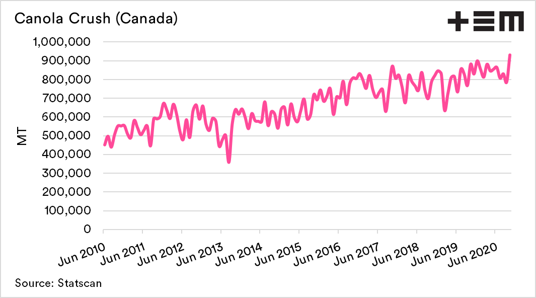 - Production of Canadian canola has dropped to the lowest level since 2015. At the same time domestic crush has grown significantly.