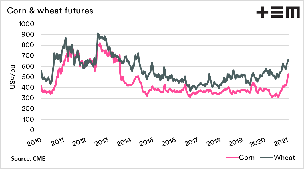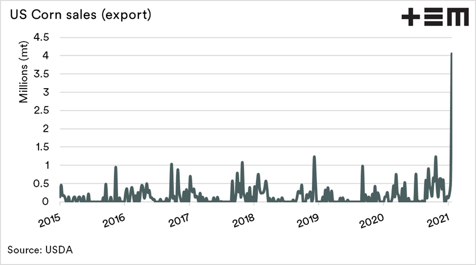 The sales into China have seen corn prices reached seven-year highs yesterday. While China can be a bit of an unknown, if the substantial purchases continue, this will be positive for pricing. The effect for us in Australia will be a likely flow-on effect on wheat.