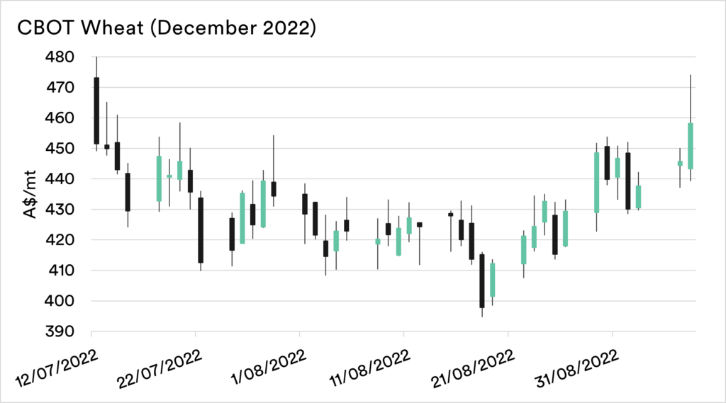 The wheat market increased strongly from February to May and started declining as expectations of export flows returning to Ukraine grew.