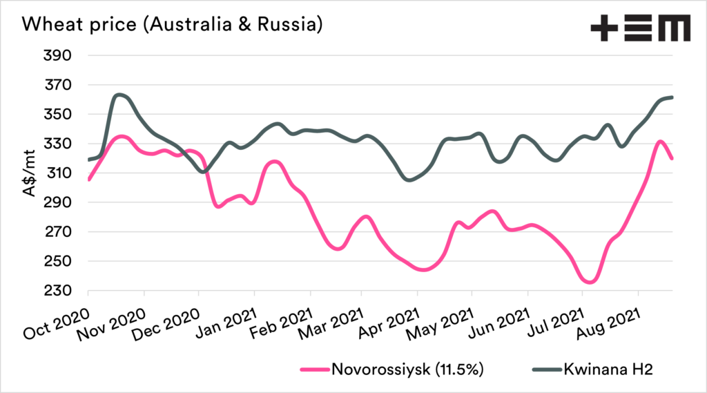 Competition in the foreign market is expected to be tough amid the record crop in Ukraine and a bumper crop in the EU. Combined EU, Ukraine and Russia crop expected to increase by 10 mmt in 2021. The EU and Ukraine are key Russian competitors. Later in 2021/22 Russian wheat could face tough competition with Australian wheat. The outlook for the new crop in Australia remains good.