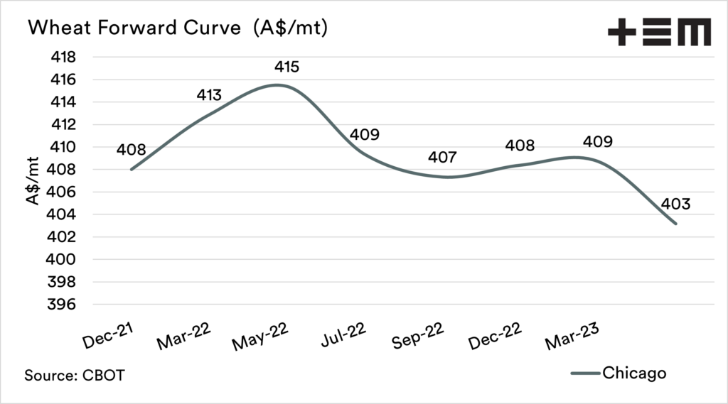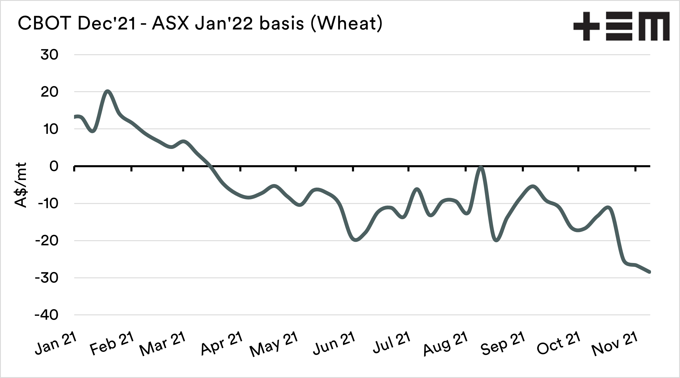 The market for physical grain in Australia for next year is offering a negative basis, as an example: