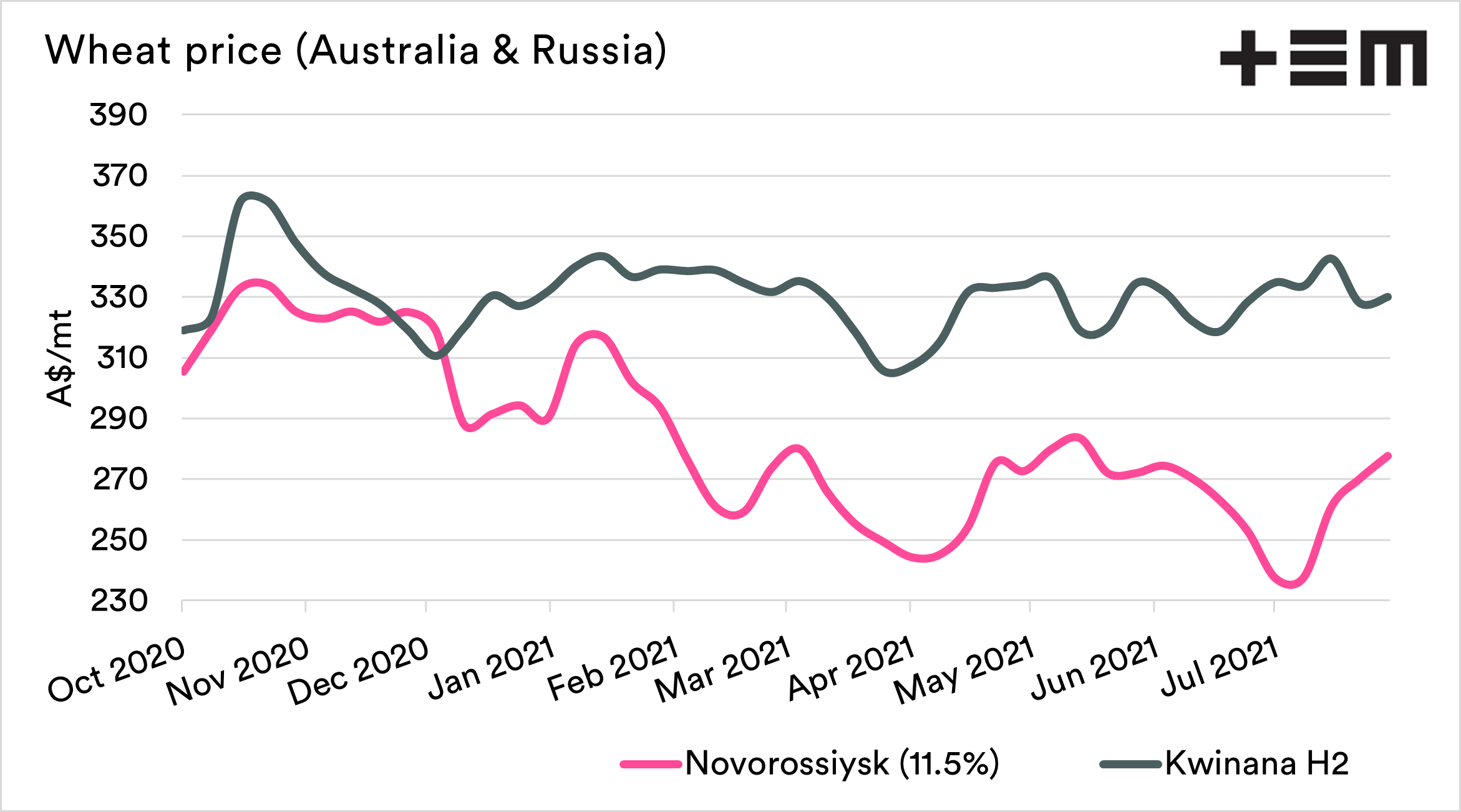 Worsening wheat crop outlook for Russia (#1 world exporter) and Canada (#3/4) suffering from drought could be not fully reflected in global wheat prices at the moment