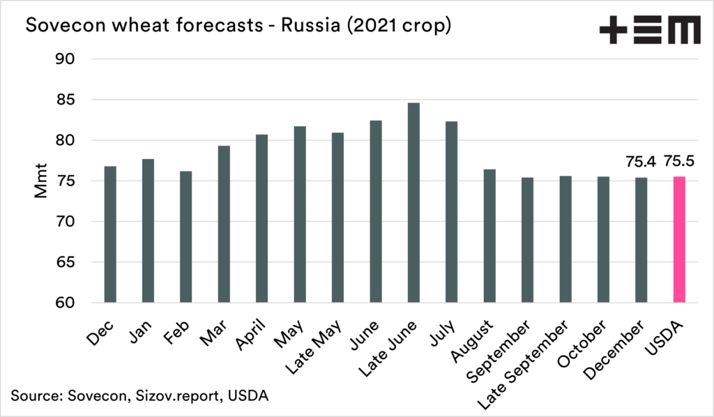 The official crop estimate is usually published by Rosstat at the end of December, then revised in March.