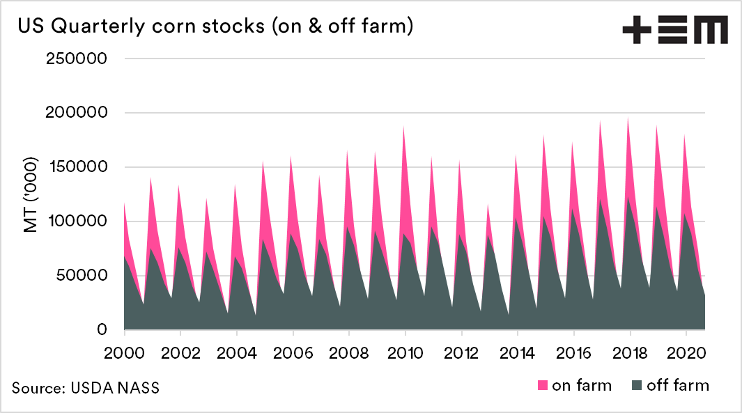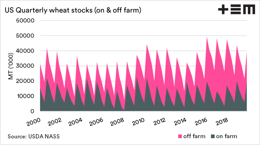 The United States Department of Agriculture (USDA) have a dataset which I am jealous of. A stocks reporting system, which provides insights into the levels of grain stocks held both on and off farm. This is something that various grain representative groups have been lobbying for in recent years.