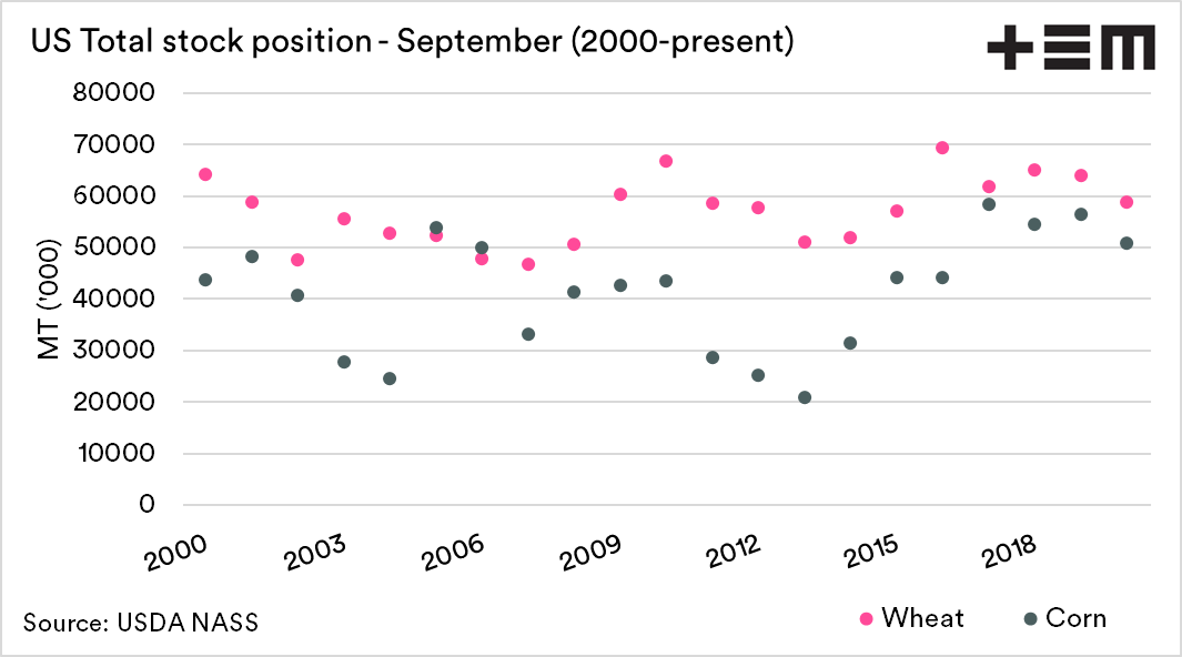 In early September the USDA WASDE forecast end stocks of 57mmt. However, by the time of the quarterly report, the actual stocks were 51mmt.